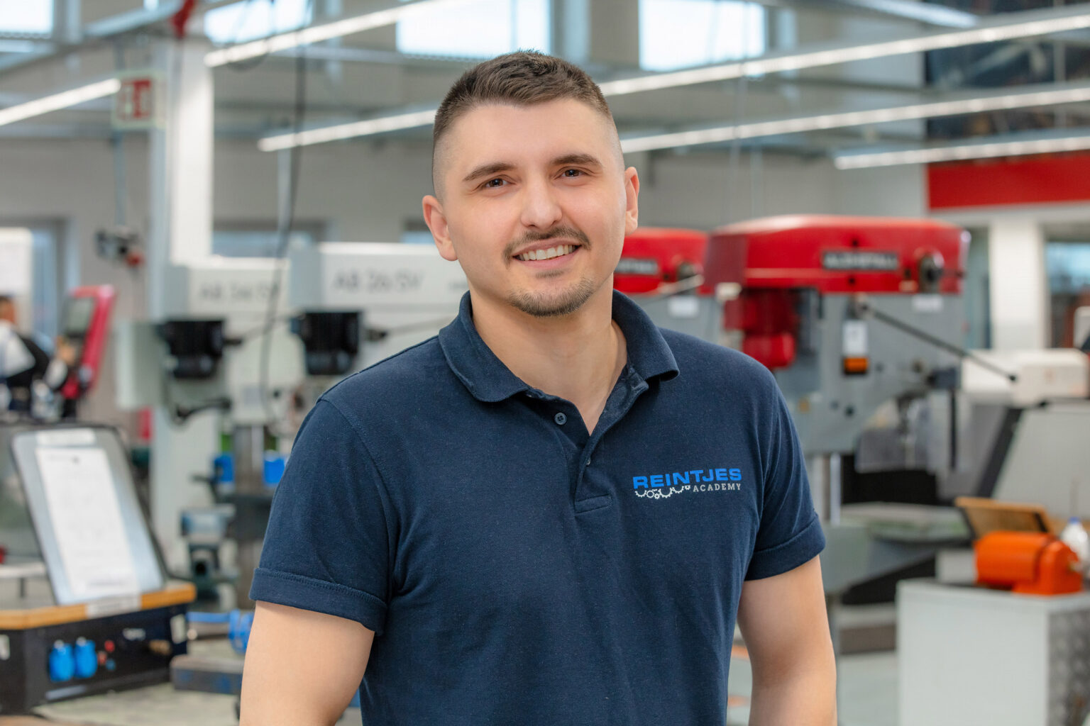 Edon Nimani ist bei uns in der REINTJES Academy der Ausbilder für Industriemechanikerinnen und Industriemechaniker in der Fachrichtung Maschinen- und Anlagenbau. Von 2019 bis 2023 absolvierte er Teile seiner Ausbildung zum Industriemechaniker bei Stephan ebenfalls in der Ausbildungswerkstatt von PreussenElektra. Zum 1. März 2024 wechselte Edon Nimani als Monteur in der Kleingetriebeabteilung zu REINTJES und ist seit Anfang 2025 als Ausbilder bei uns tätig. In seiner Freizeit treibt er Fitnesssport, schwimmt gerne und verbringt viel Zeit mit seiner Familie.